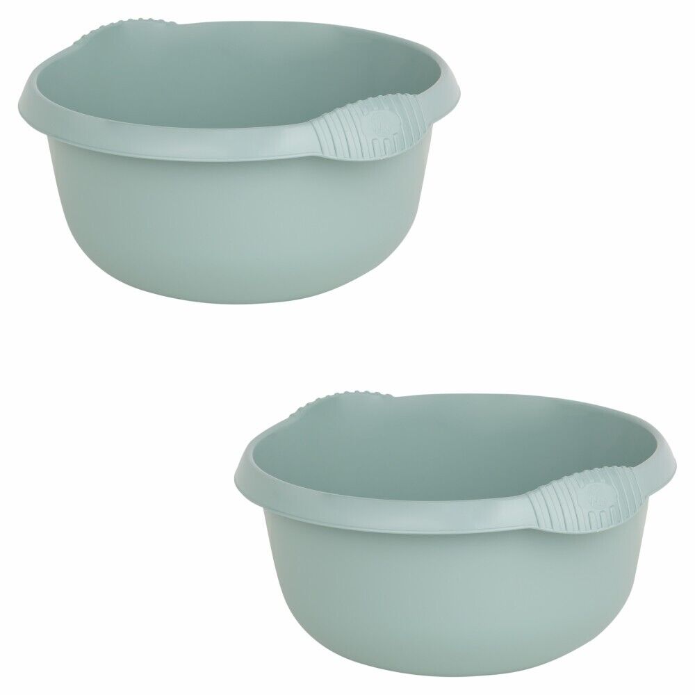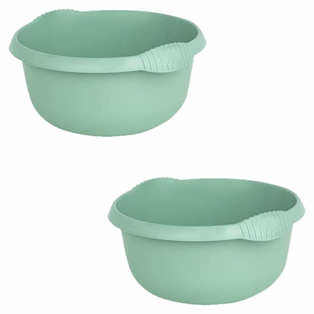 2 x Round Plastic Washing Up & Mixing Bowl 36cm Home Basin Sink Tubs Silver Sage