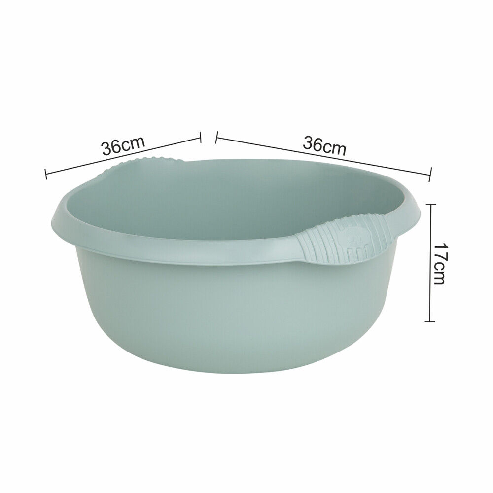 Plastic 36cm Round Washing Up Bowl 10L Capacity Kitchen Sink Basin Silver Sage