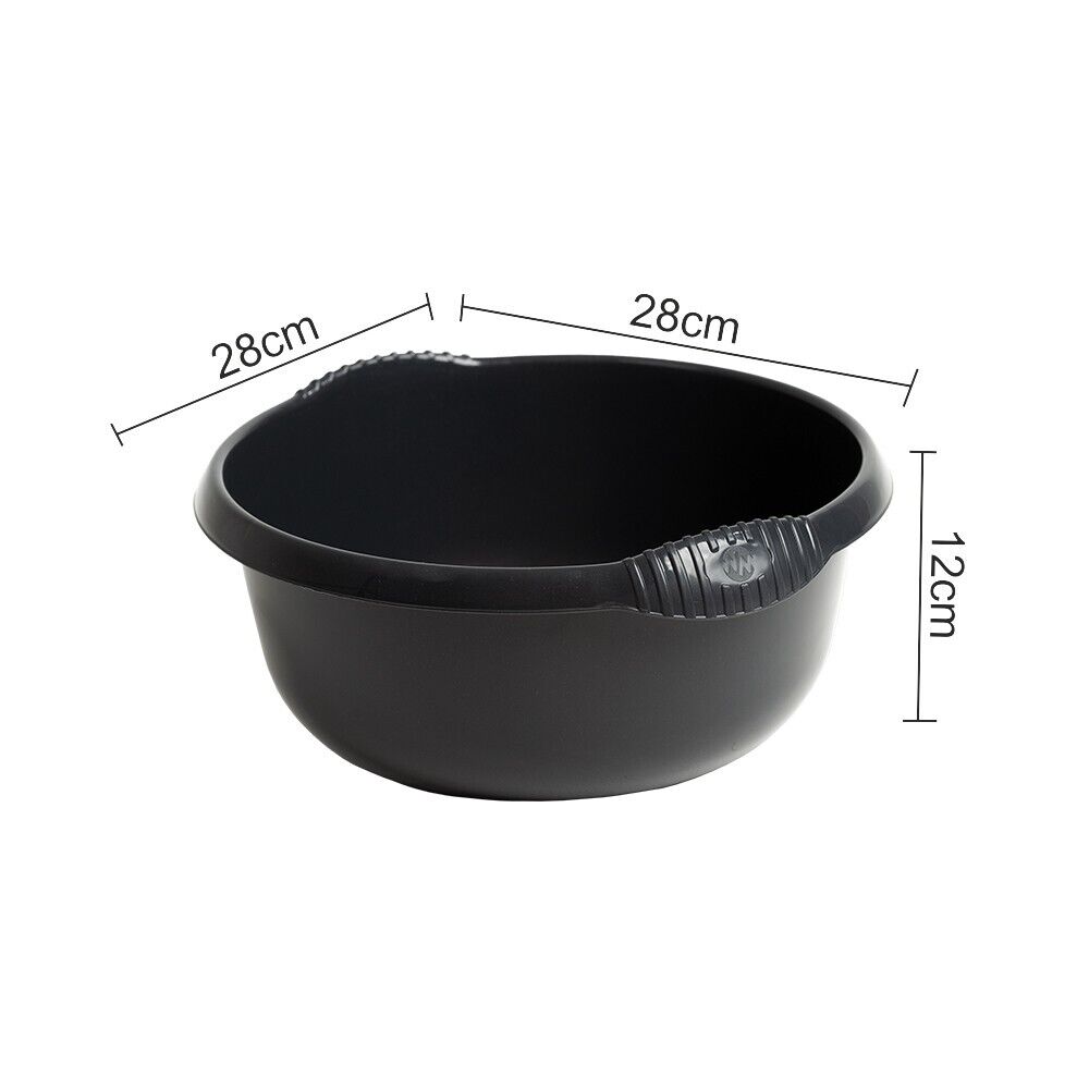 Plastic 28cm Round Washing Up Bowl 5L Capacity Handle Kitchen Sink Dark Grey
