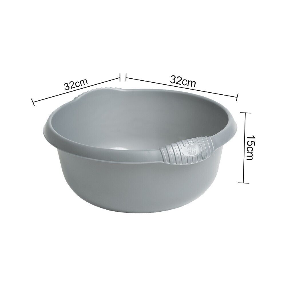 Plastic 28cm Round Washing Up Bowl 5L Capacity Handle Home Kitchen Sink Silver