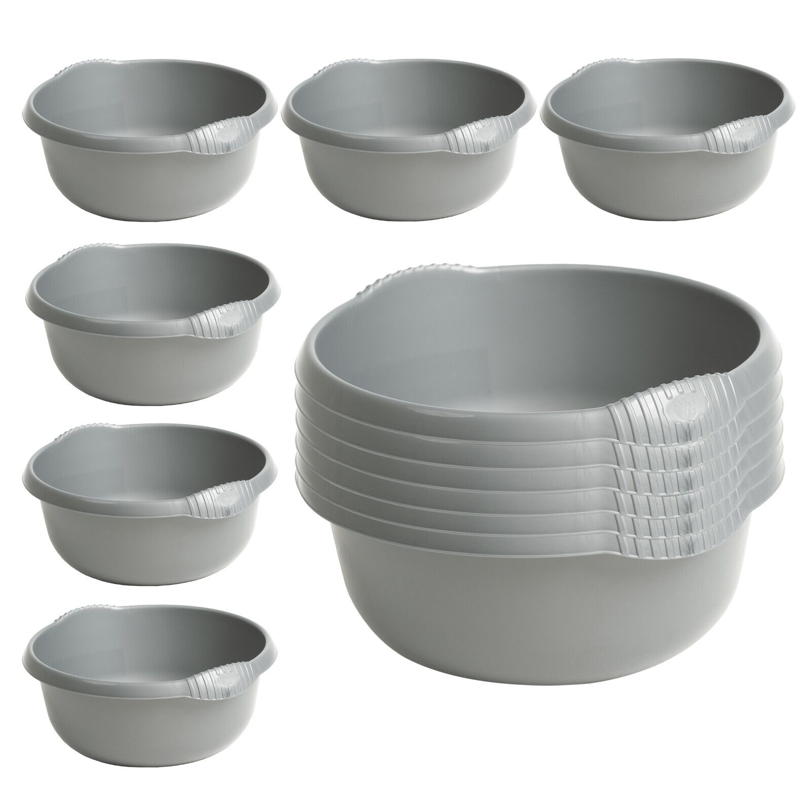 12 x Plastic 36cm Round Washing Up Bowl 10L Capacity Kitchen Basin - Silver Sage
