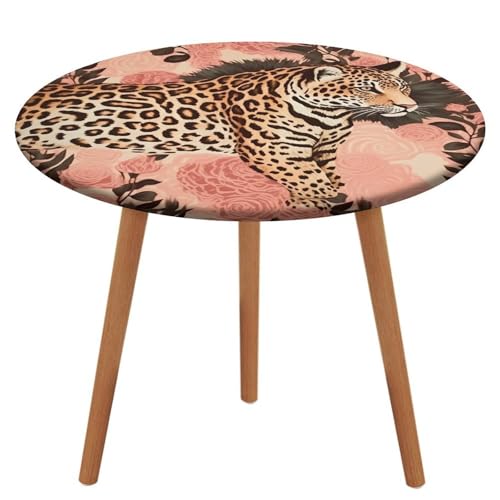 QMNLKH Waterproof Fitted Table Cover Striped Leopard Round Tablecloth Wipeable for Indoor Outdoor Picnic Camping