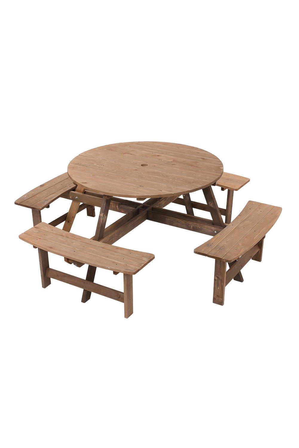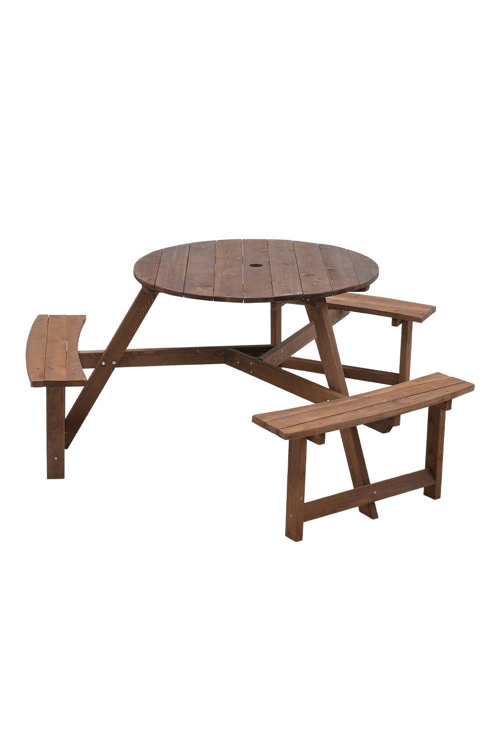 vidaXL Picnic Table with Parasol Hole for 4 Children Round Solid Fir Wood