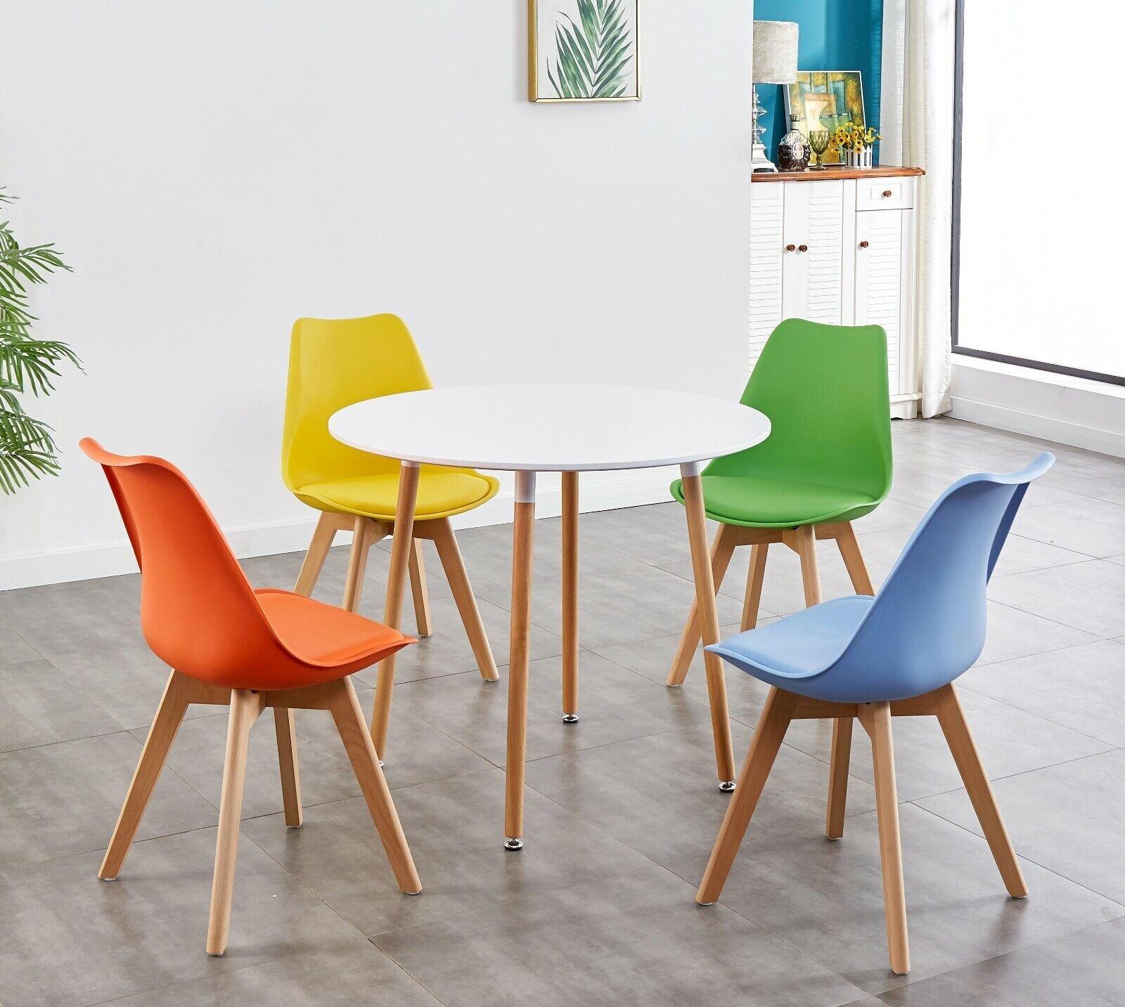 Wood Round Kitchen Dining Table Set And 4 Colourful Tulip Chairs