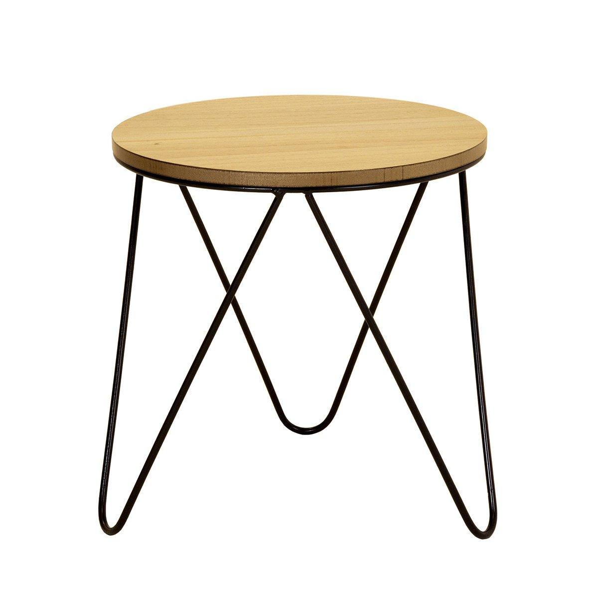 Round Wood & Metal Hairpin Industrial Bed Side Table