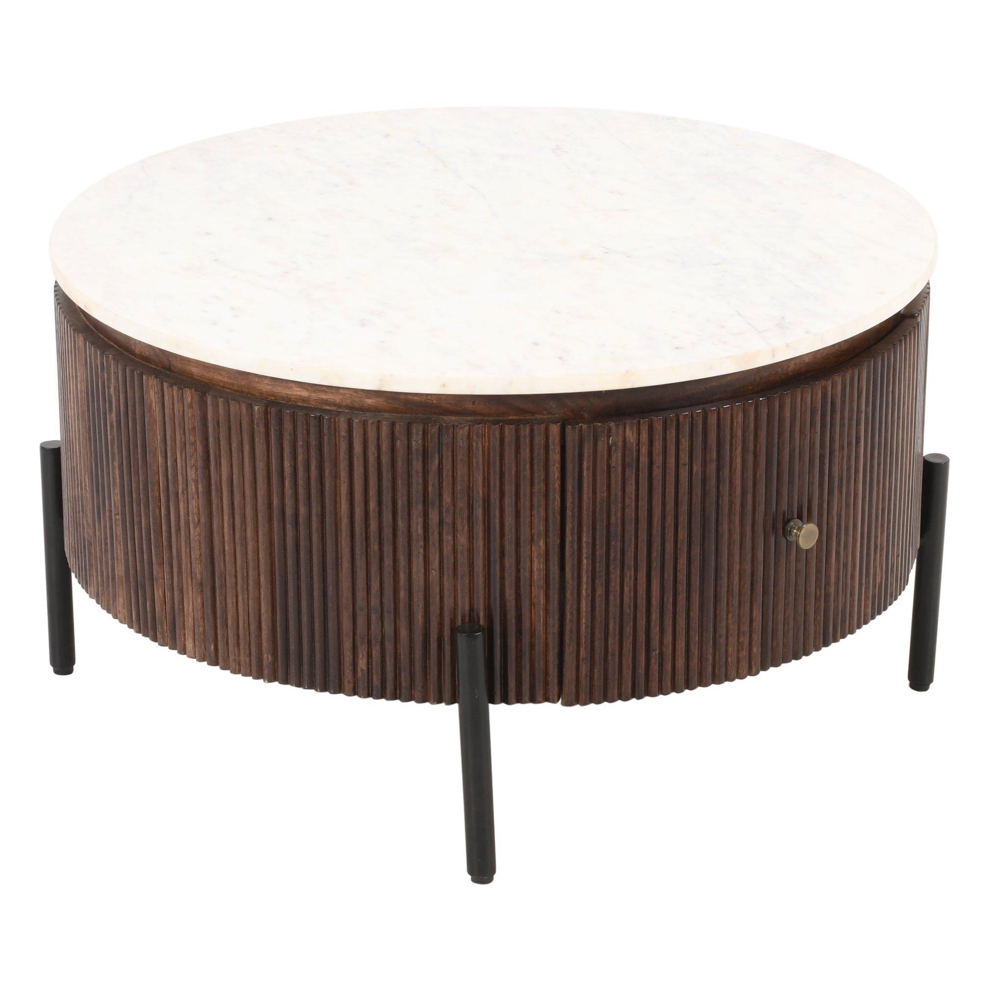 Tilden Mango Wood Round Fluted Coffee Table With Marble Top & Metal Legs