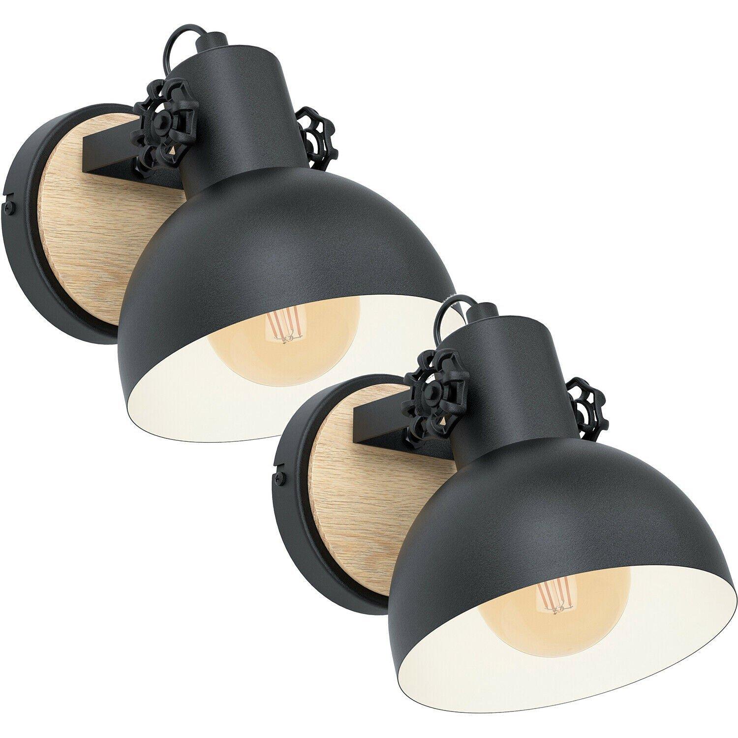 2 PACK LED Wall Light / Sconce Black & Wood Round Adjustable Shade 10W E27