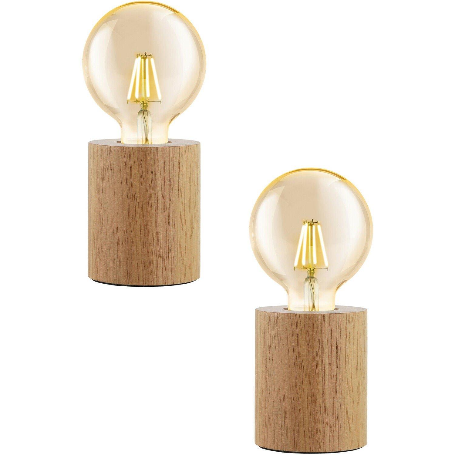 2 PACK Table Desk Lamp Simple Compact 1x Round Brown Wood Holder E27 28W