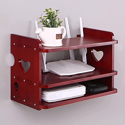 Hggzeg WiFi Router Storage Box Floating Shelves TV Set-Top Rack, Wall-Mounted Multi-Layer Cable Management Storage Rack for Wall Decoration(jl01,Cherry Color)