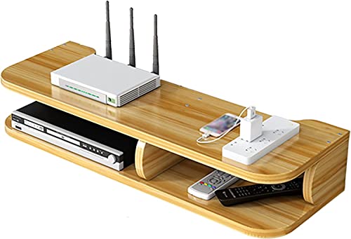 YCDJCS Wooden WiFi Router Storage Box - Wall Mounted Unit Shelf for Living Room Set Top Box - Multifunction Storage (Wooden Color, 42x23.5x11cm)