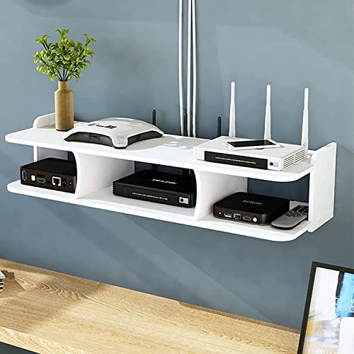 White Wall Router Shelf Storage Box for WiFi Router, TV Set-Top Box, Wood-Plastic, Easy to Install, 48 x 12 x 28 cm