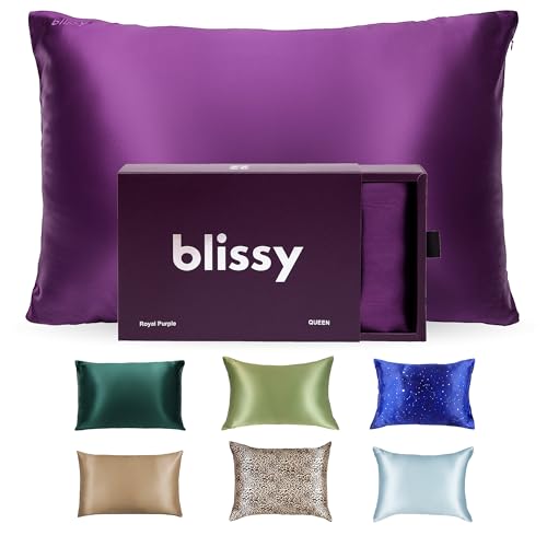 Blissy Silk Pillowcase - 100% Pure Mulberry Silk - 22 Momme 6A High-Grade Fibers - Silk Pillow Cover for Hair & Skin - Regular, Queen & King (Royal Pu