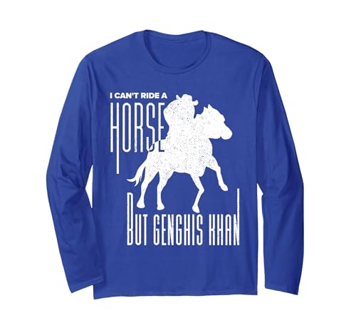 Witty History Pun I Can't Ride a Horse but Genghis Khan Long Sleeve T-Shirt, Adult Unisex, Royal Blue, Small