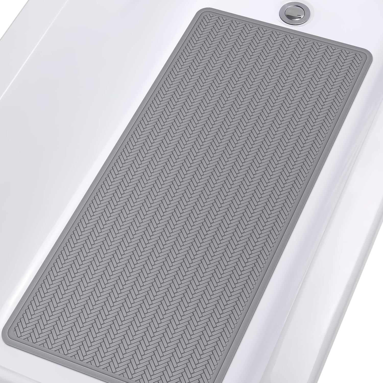 OTHWAY Non Slip Bathtub Mat, Extra Long 43x92 cm Rubber Bath Tub Shower Mat, Soft Mat for Bathroom Tub with Strong Suction Cups (Grey)