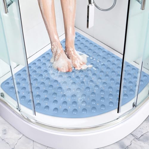 XIYUNTE Corner Shower Mat Non Slip Anti Mould - 54x54cm Quadrant Shape Shower Mats for Inside Shower, Blue Rubber Bath Mat for Corner Shower, Sector Anti Slip Bath Mats for Bathroom, Machine Washable