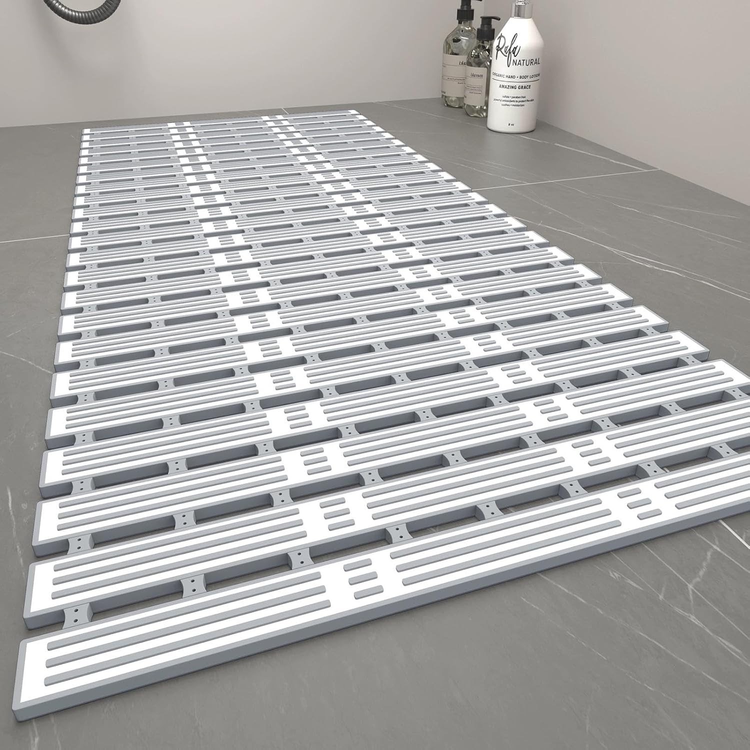 Venuso Square Shower Mats Non Slip Anti Mould, 43 x 75 cm Rubber Anti Slip Bath Mat with Drain Holes, Machine Washable, Grey