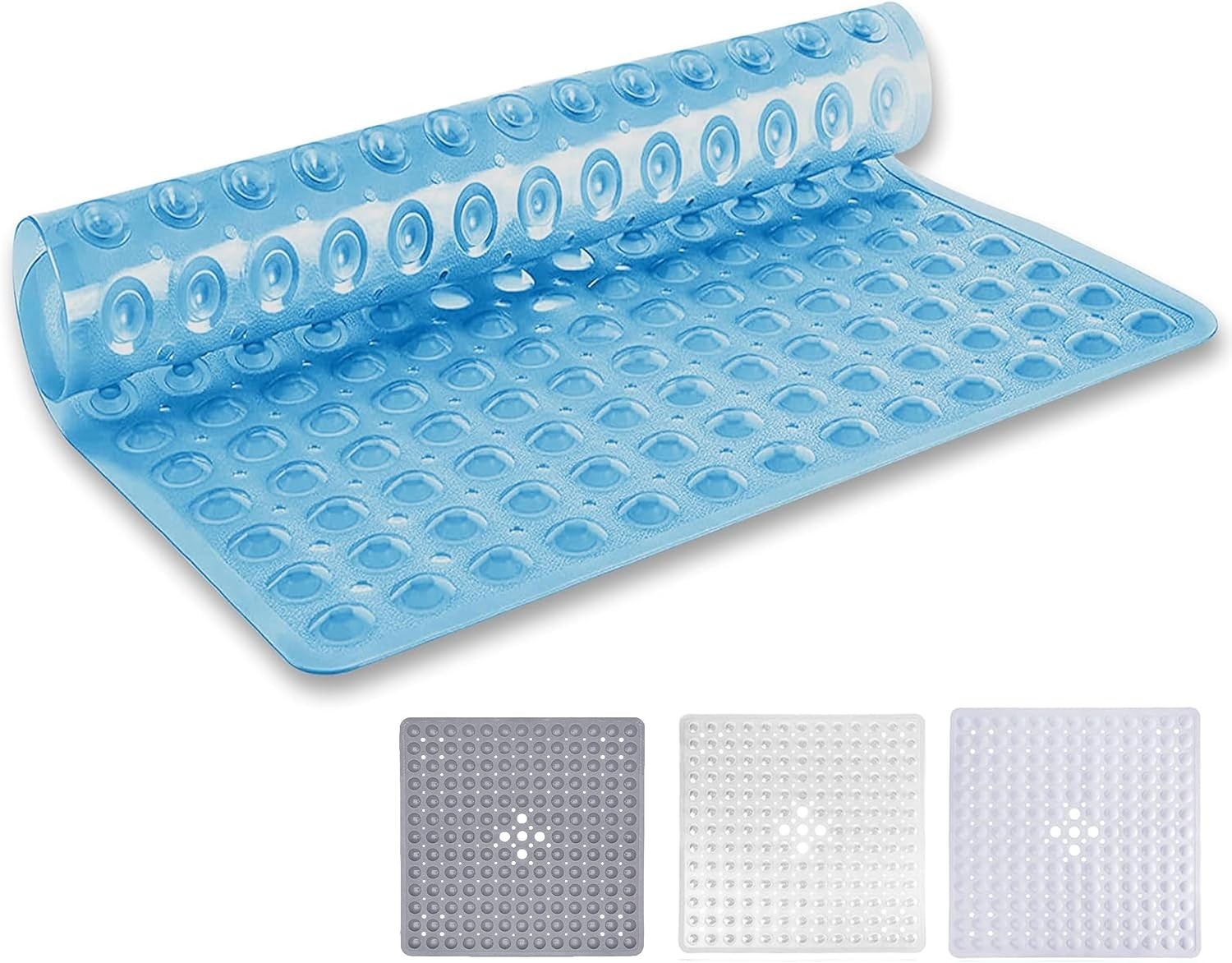 Venuso Square Shower Mats Non Slip Anti Mould, Rubber Anti Slip Bath Mat with Drain Holes, Machine Washable, Blue 43 x 75 cm