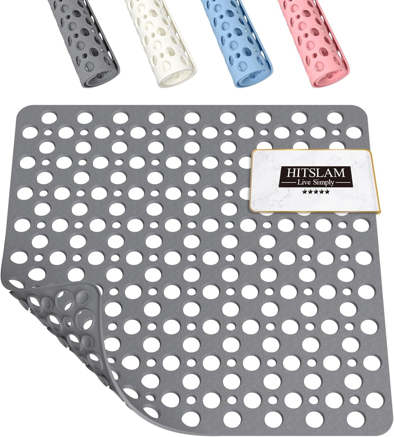 HITSLAM Square Shower Mat Non Slip Anti Mould, 53 x 53 cm Rubber Bath Mat for T
