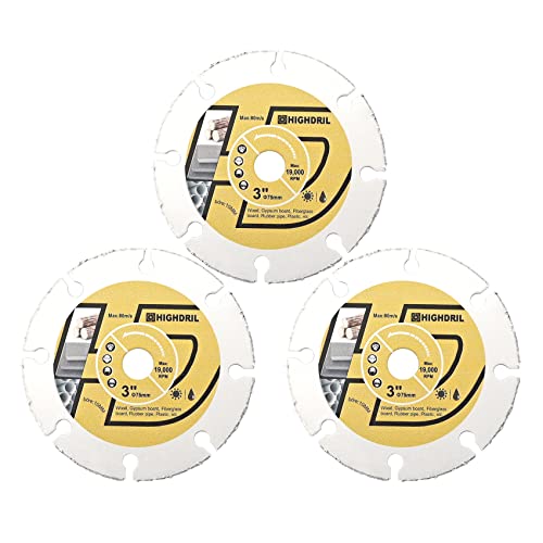 HIGHDRIL 3PCS 3Inch Circular Saw Blade - Carbide Wood Cutting Disc with Arbor 10MM for Wood, Gypsum Board, Fiberglass, Rubber Pipe, Plastic, Cement Residue
