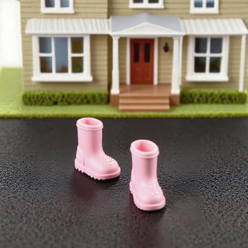 Minamzee 1:12 Miniature Dollhouse Rainboots, 1 Pairs Mini Rubber Doll Shoes Fairy Style Decoration for Doll Furniture Accessories(Pink)