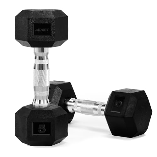 ADABT Hex Dumbbells | Rubber Encased Free Weights with Knurled Steel Handles | Anti-Roll Design | Home Gym, Fitness & Strength Training | 10KG Pair (2 x 5KG)