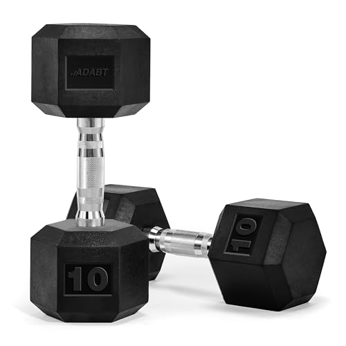 ADABT Hex Dumbbells | Rubber Encased Free Weights with Knurled Steel Handles | Anti-Roll Design | Home Gym, Fitness & Strength Training | 20KG Pair (2 x 10KG)