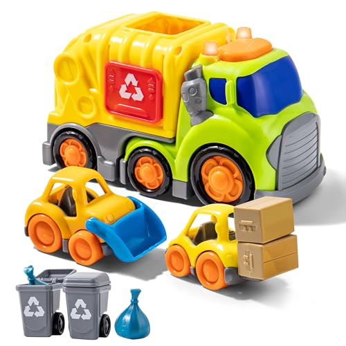 HERSITY Garbage Truck Bin Lorry Toys for 3+ Years Old Boys, Rubbish Trucks Dustcart Toy Cars with Lights and Sounds, Kids Gifts age 4 5 6 Children Girls