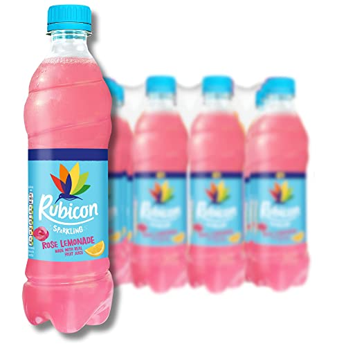 Rubicon 12 Pack Sparkling Rose Lemonade, Flavoured Fizzy Drink, Refresh your routine with Rose Lemonade "Life Just Got Rosier" - 12 x 500ml Bottles