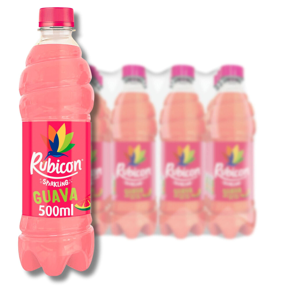 Rubicon 12 Pack Sparkling Guava Flavoured Fizzy Drink with Real Fruit Juice, Handpicked Fruits for a Temptingly Intense Taste "Made of Different Stuff" - 12 x 500ml Bottles, Packaging May Vary