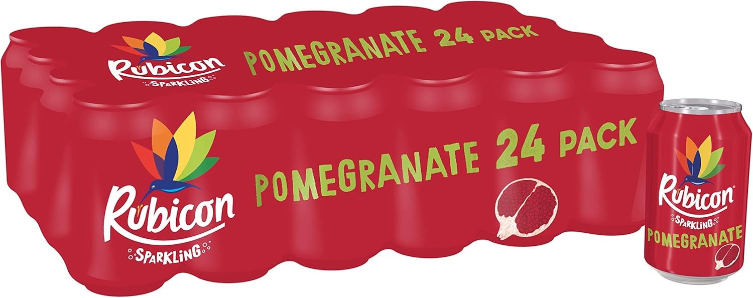 Rubicon 24 Pack Sparkling Pomegranate Flavoured Fizzy Drink with Real Fruit Juice, Handpicked Fruits for a Temptingly Intense Taste "Made of Different Stuff" - 24 x 330ml Cans