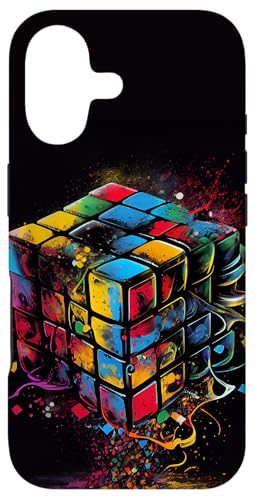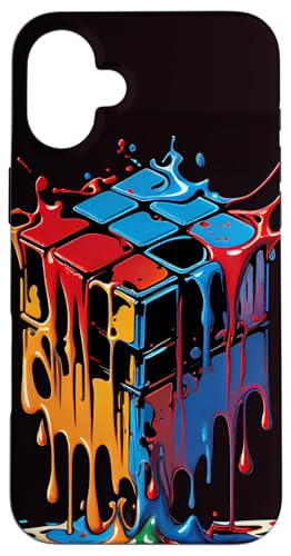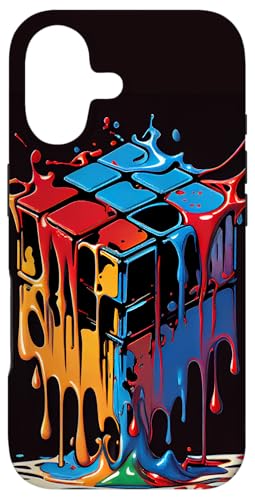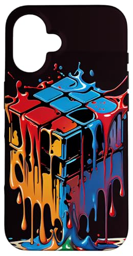 Rubik Magic Cube Dripping Colorful Illustration Graphic Case for iPhone 16 Plus