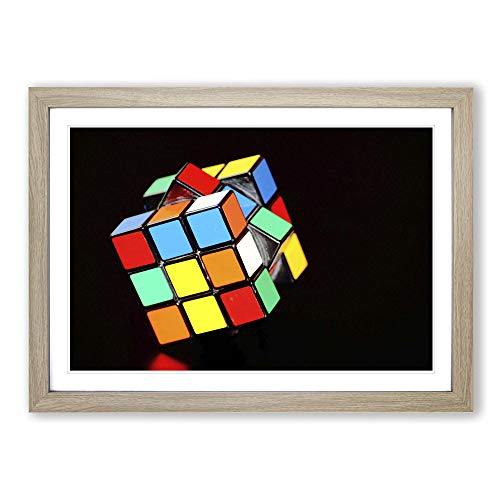 Big Box Art Framed Print of Rubik Cube Design | Wall Art Picture | Home Decor for Kitchen, Living, Dining Room, Lounge, Bedroom, Hallway, Office, Oak, A2 / 24.5x18 Inch / 62x45cm