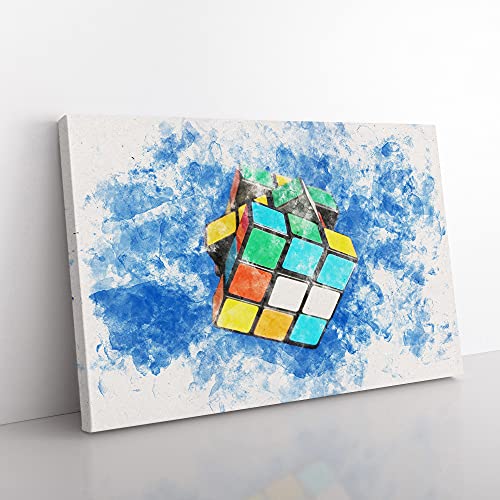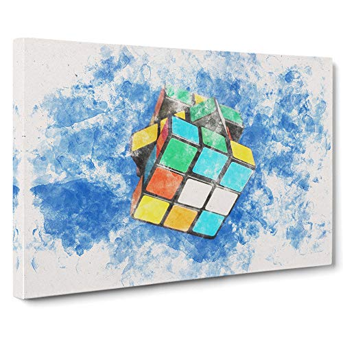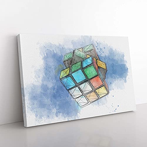 The Rubik Cube Watercolour Canvas Print for Living Room Bedroom Home Office Décor, Wall Art Picture Ready to Hang, 30 x 20 Inch (76 x 50 cm)