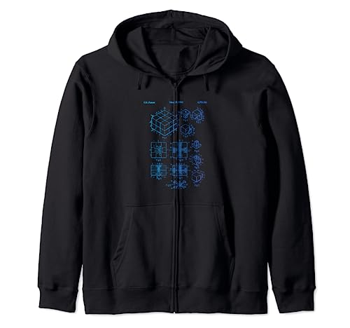 Competitive Puzzle Cube Rubik Patent Speed Cubing Retro Math Zip Hoodie
