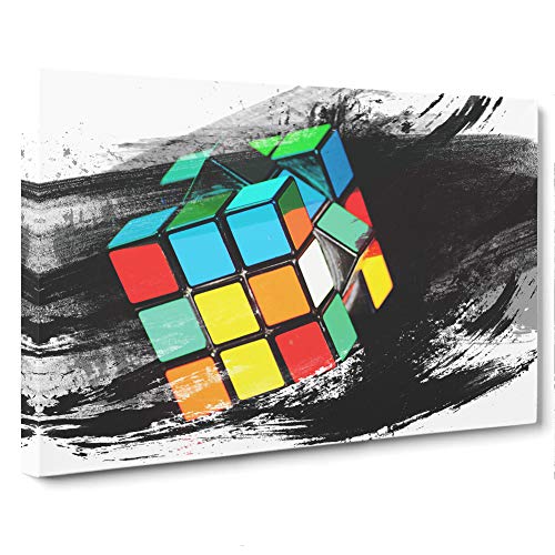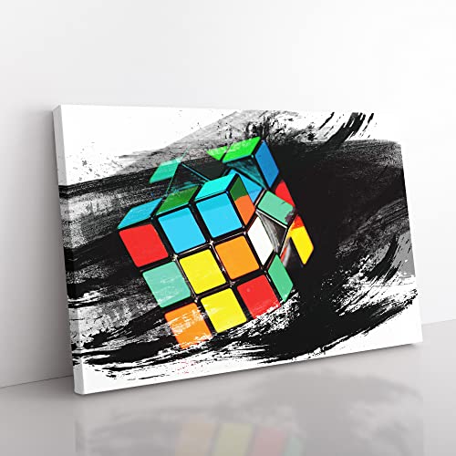 Big Box Art Canvas Print Wall Art Rubik Cube | Mounted and Stretched Box Frame Picture | Home Decor for Kitchen, Living, Dining Room, Bedroom, Hallway, Multi-Colour, 20x14 Inch