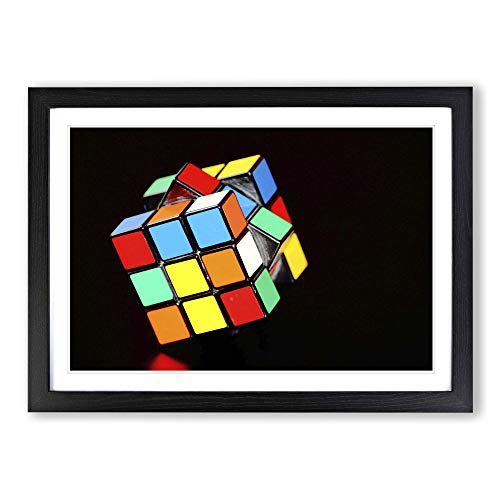 Big Box Art The Rubik Cube in Abstract Framed Wall Art Picture Print Ready to Hang, Black A2 (62 x 45 cm)