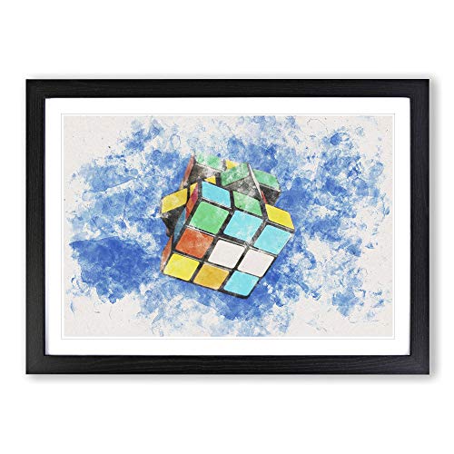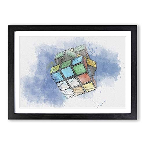 Big Box Art The Rubik Cube Watercolour Framed Wall Art Picture Print Ready to Hang, Black A2 (62 x 45 cm)