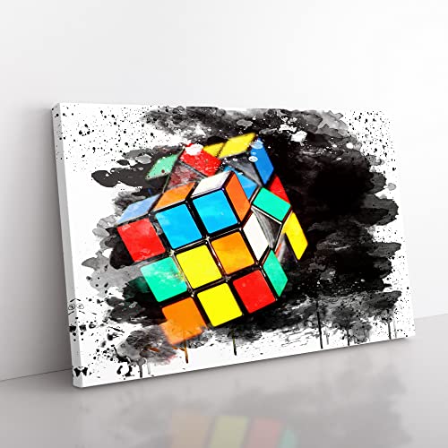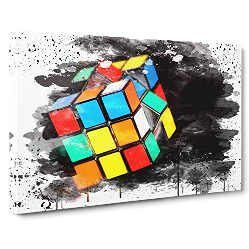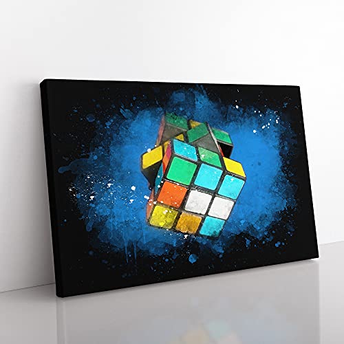 The Rubik Cube Paint Splash Canvas Print for Living Room Bedroom Home Office Décor, Wall Art Picture Ready to Hang, 30 x 20 Inch (76 x 50 cm)