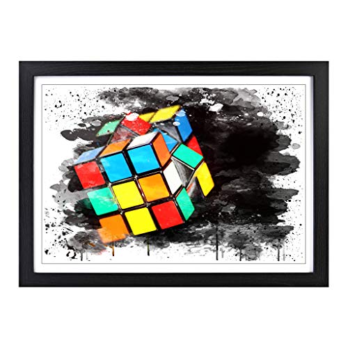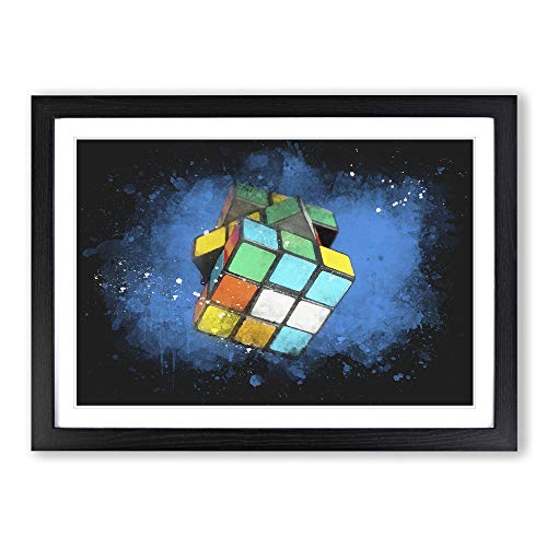 Big Box Art The Rubik Cube Paint Splash Framed Wall Art Picture Print Ready to Hang, Black A2 (62 x 45 cm)