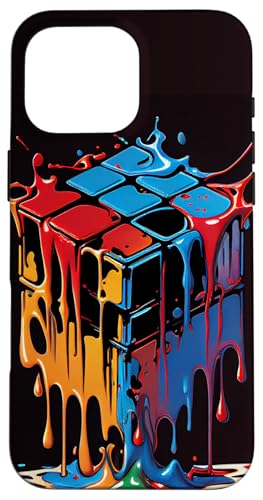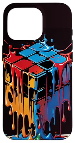 Rubik Magic Cube Dripping Colorful Illustration Graphic Case for iPhone 16 Pro Max