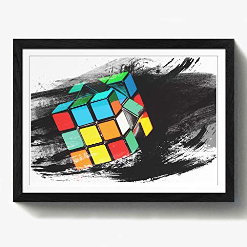 Arty Pie Framed Print Black A2 (24.5x18 Inch) Rubik Cube V2, Wood, Multi-Colour, 60 x 42 x 2 cm