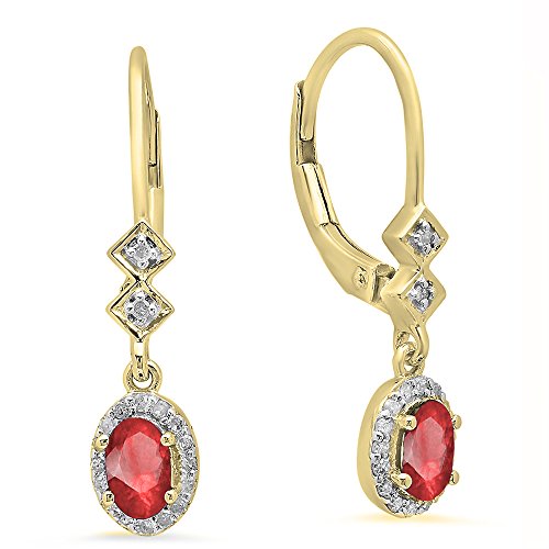 Dazzlingrock Collection 5X3mm Each Oval Lab Created Gemstone & Round Natural Diamond Women Dangling Drop Earrings, 14K Yellow Real Solid Gold, Created Ruby,Diamond,Gold, Created Ruby