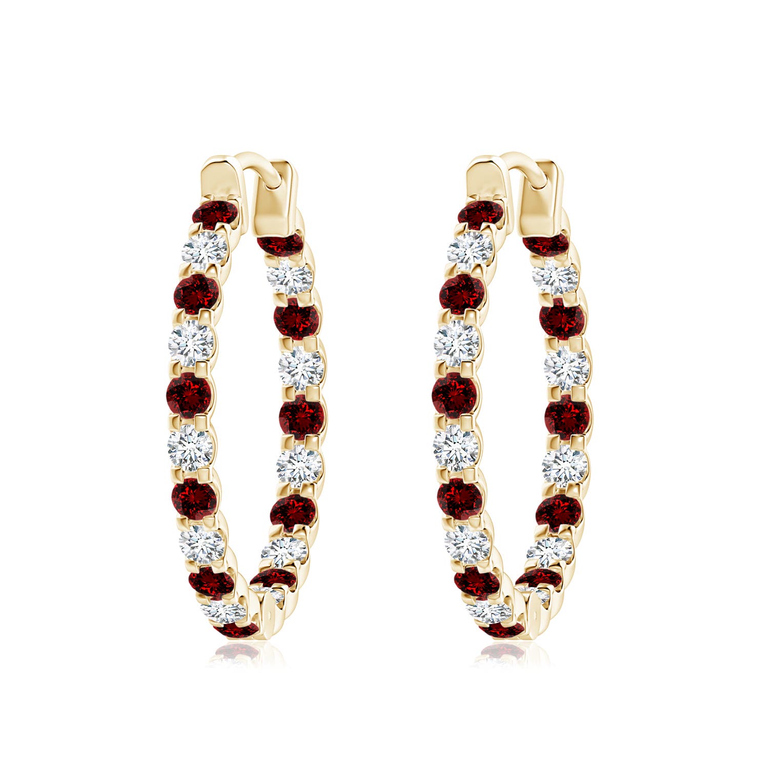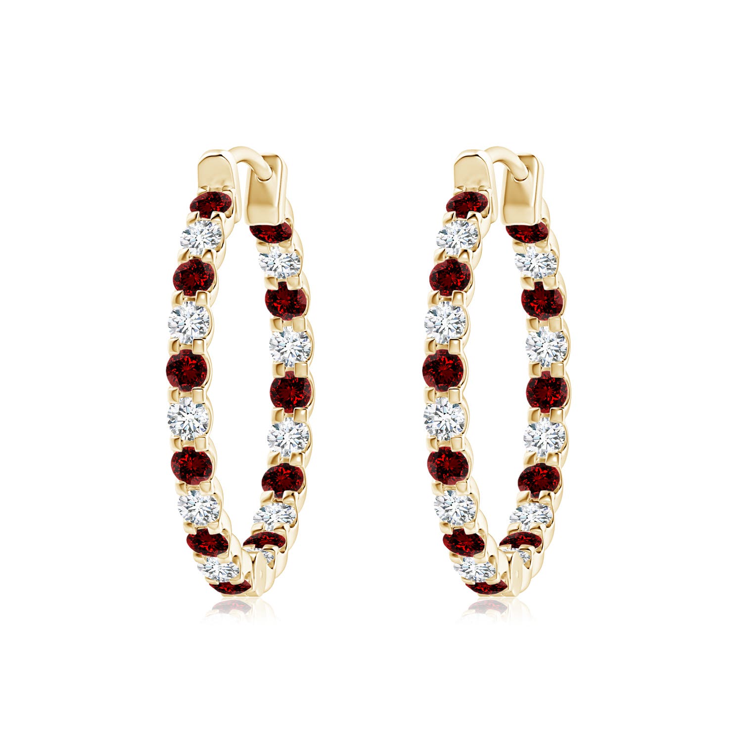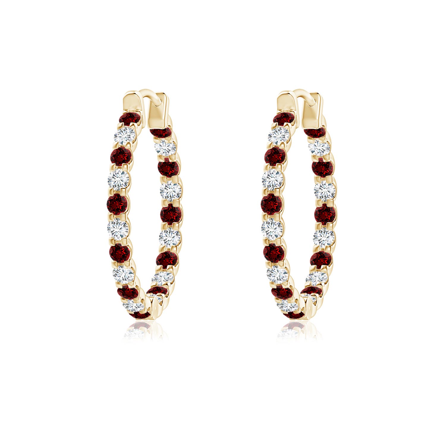 Angara 0.77 Carat Prong-Set Round Lab-Grown Ruby and Diamond Inside Out Hoop Earrings in 18K Yellow Gold