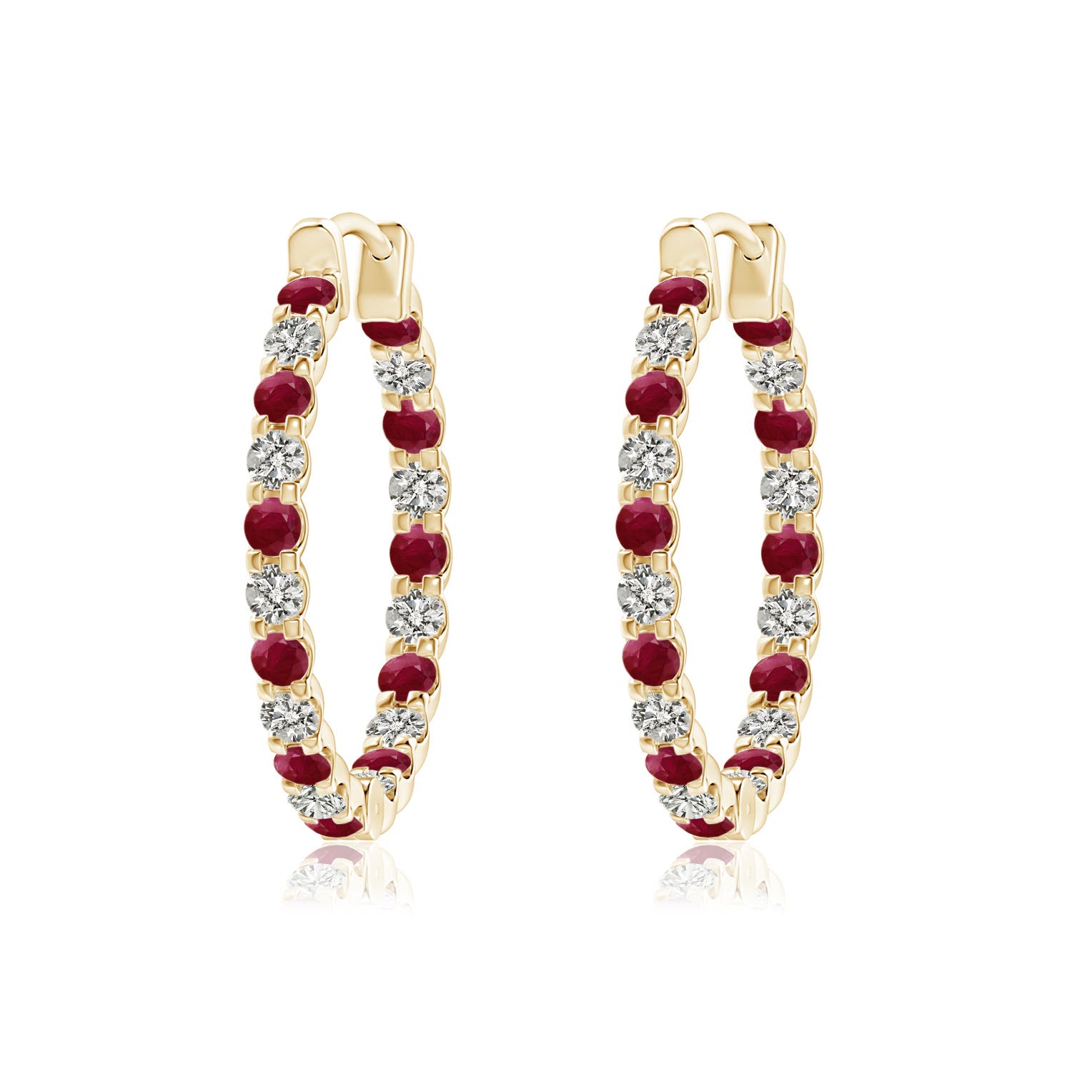 Angara 1.1 Carats Prong-Set Round Lab-Grown Ruby and Diamond Inside Out Hoop Earrings in 18K Yellow Gold