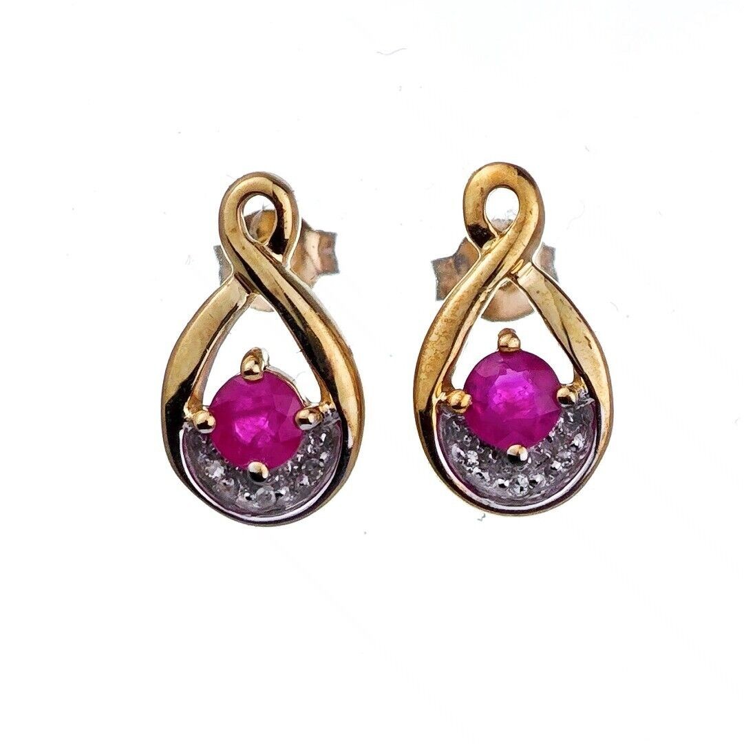 9ct Ruby Diamond Earrings Gold Studs Natural Red Gemstones 0.66ct Hallmarked