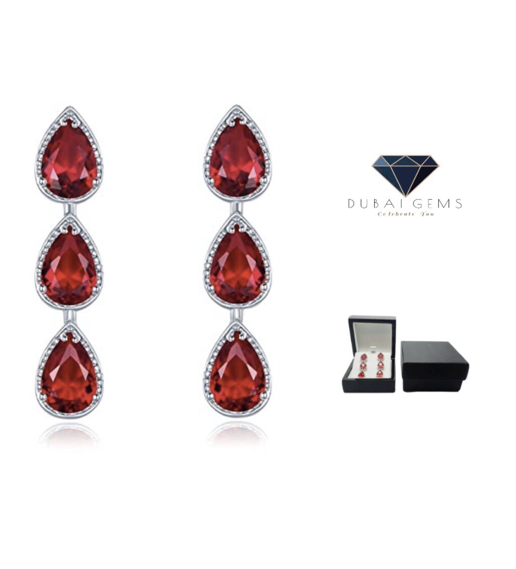 JO WISDOM Women Earrings,925 Sterling Silver Leverback Drop & Dangle Earrings with 3A Cubic Zirconia July Birthstone Ruby Color with White Gold Plated,Jewellery for Women