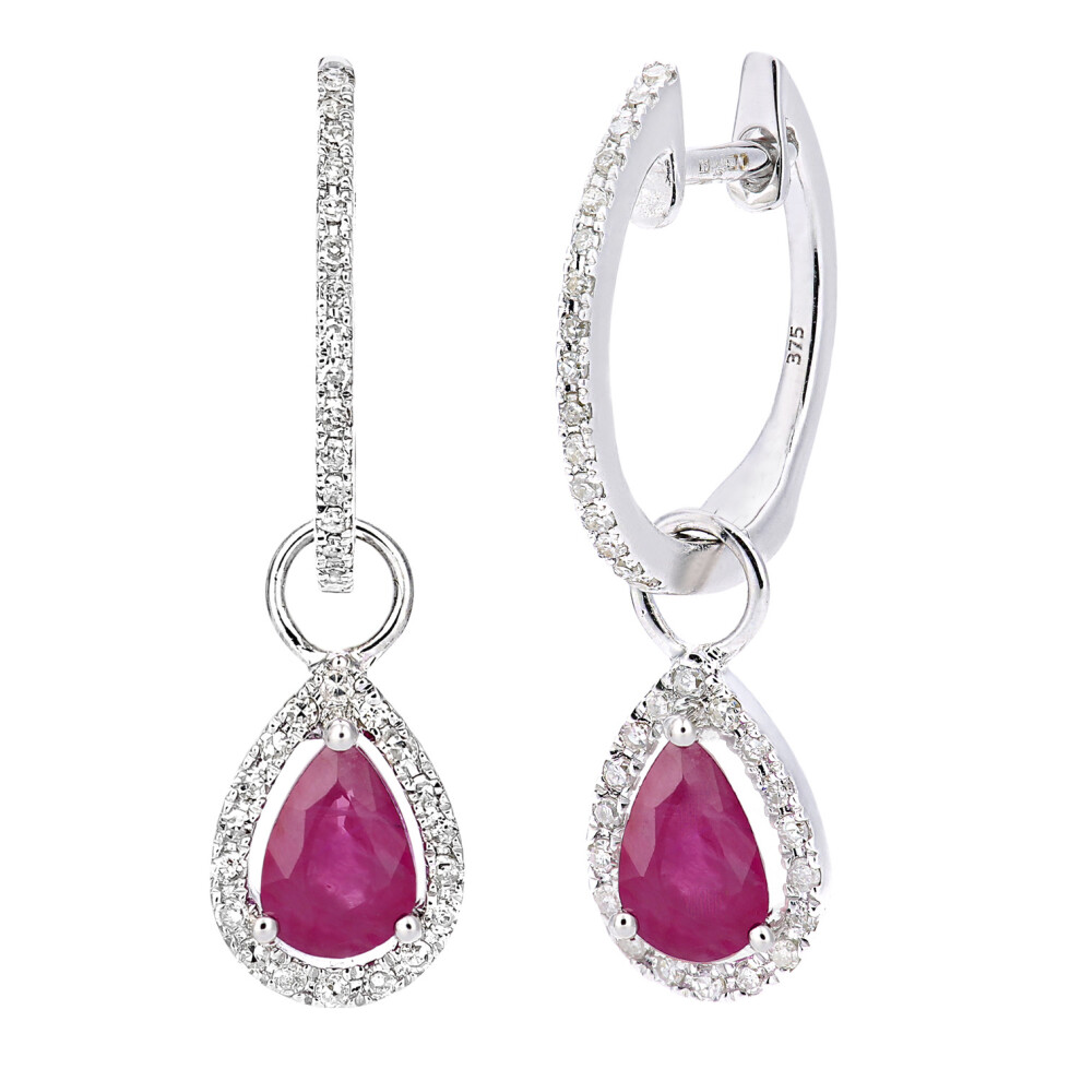 Jewelco London 9ct White Gold Round 20pts Diamond Pear 1ct Ruby Teardrop Drop Earrings - DE1AXL618WRU