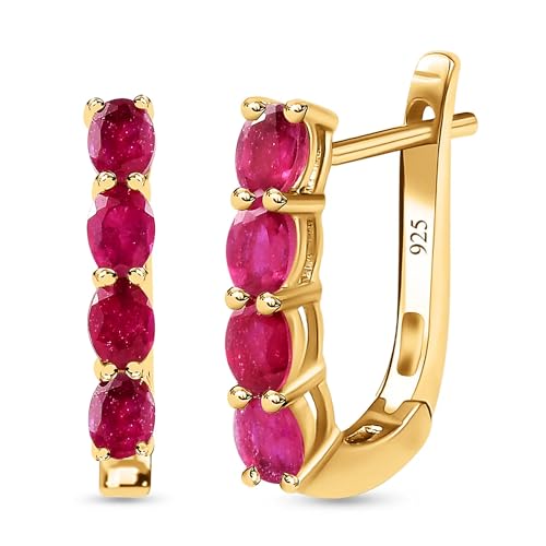 TJC Ruby Hoop Earrings for Women 925 Sterling Silver, July Birthstone Earrings with 18K Vermeil Yellow Gold Plating, Gold Hoop Earrings for Women Jewellery Gift
