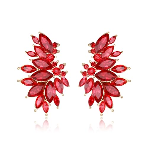 Clearine Sparkly Rhinestone Marquise Statement Dangle Drop Stud Earrings for Women Bride Bridesmaid Wedding Party Prom Jewellery Ruby Gold-Tone