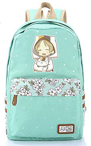 WANHONGYUE Natsume Yuujinchou Anime Floral Dot Student Backpack Schoolbag Book Bag Casual Daypack Rucksack /7 Green